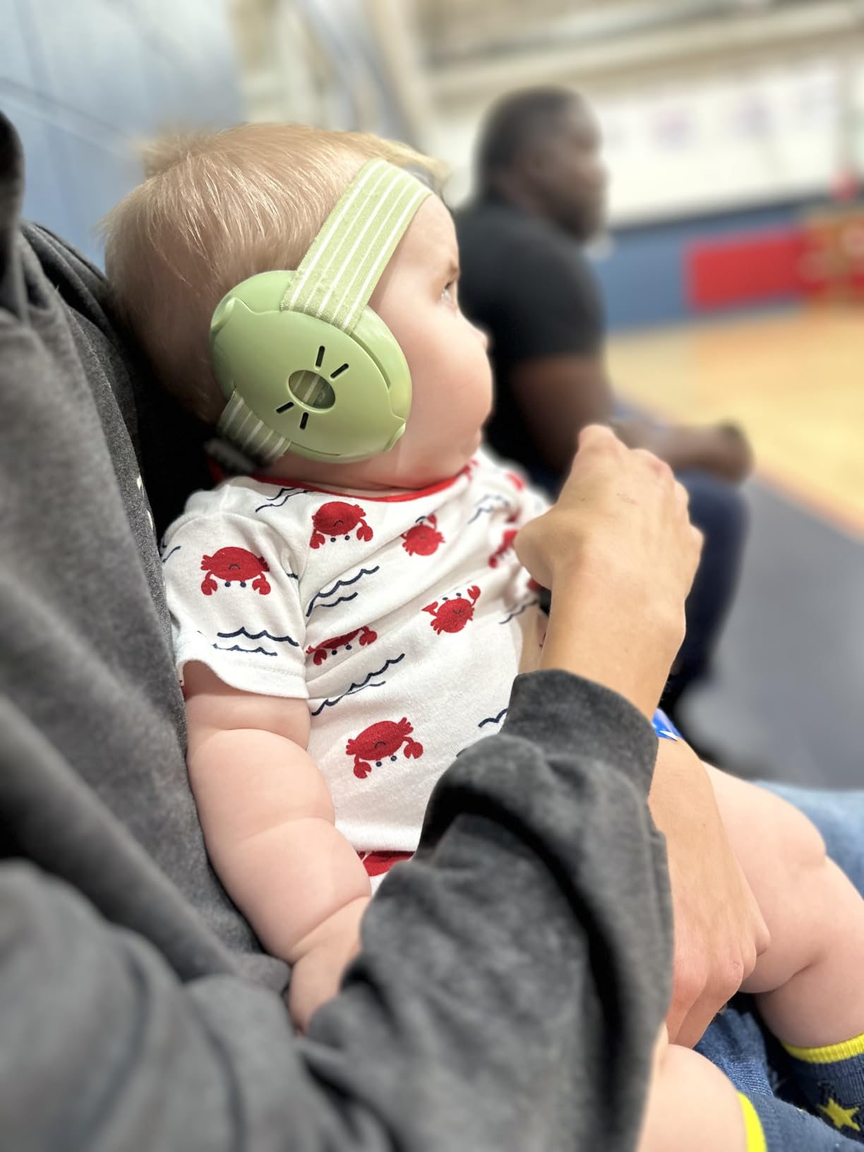 No — and that’s intentional. The ear muffs are designed to reduce loud, harmful noise while still allowing your baby to remain calm and aware of their surroundings.